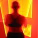 A pair of legs and blue illumination